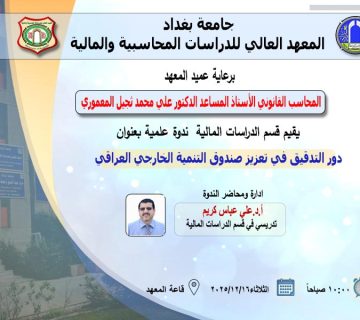 التقى عميد المعهد العالي للدراسات المحاسبية والمالية في جامعة بغداد المحاسب القانوني الأستاذ المساعد الدكتور علي محمد ثجيل المعموري بطلبة الدراسات العليا لقسم الدراسات المحاسبية وفي بداية اللقاء رحب عميد المعهد بالطلبة متمنيا لهم الموفقية والنجاح عند أداء الامتحانات النهائية للعام الدراسي 2024/2025.