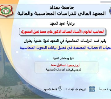 اعلان عن ندوة علمية يقيمها قسم الدراسات المحاسبية في المعهد بعنوان (البرمجيات الاحصائية المعتمدة في تحليل بيانات البحوث المحاسبية)