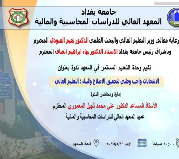 اعلان عن ندوة في المعهد بعنوان (الانتخابات واجب وطني لتحقيق الاصلاح والبناء : التعليم العالي)Pgiafs09/05/2025
