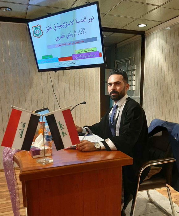ناقش قسم الدراسات المالية بالمعهد العالي للدراسات المحاسبية والمالية للدراسات العليا في جامعة بغداد البحث الموسوم (دور العدسة الأستراتيجية في تحقيق الأداء الريادي الضريبي – بحث تطبيقي في الهيئة العامة للضرائب) للطالب سيف أنور ضيدان للحصول على شهادة الدبلوم العالي المعادلة لشهادة الماجستير في الضرائب ويمنح حاملها جميع حقوق وأمتيازات شهادة الماجستير.