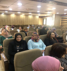 وتطرقت الورشة الى محور مهم حول الجانب الصحي للمرأة واهمية توعية النساء صحياً مع اهمية عمل الفحص الذاتي للكشف عن مرض السرطان وتم تقديم هذاا المحور من قبل المدرس كواكب نجم الدين رئيسة قسم الفحص السريري في المركز الوطني الريادي لبحوث السرطان والمدرس المساعد فضلى سعدون جابرمسؤول وحدة الاسنان في شعبة الصحة الجامعية بجامعة بغداد.