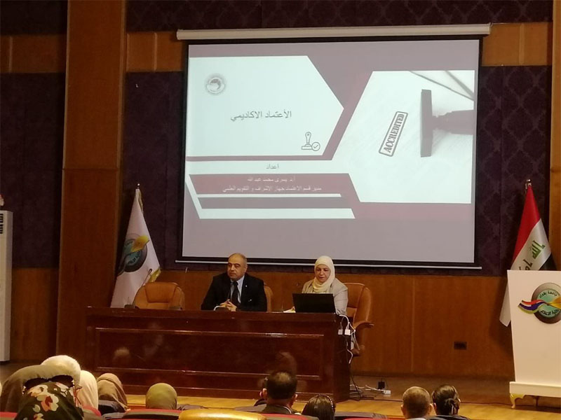 وتم مناقشة الاعتماد الاكاديمي ومراحله وانواعه في الكليات والمعاهد والمراكز وكيفية الحصول عليه.