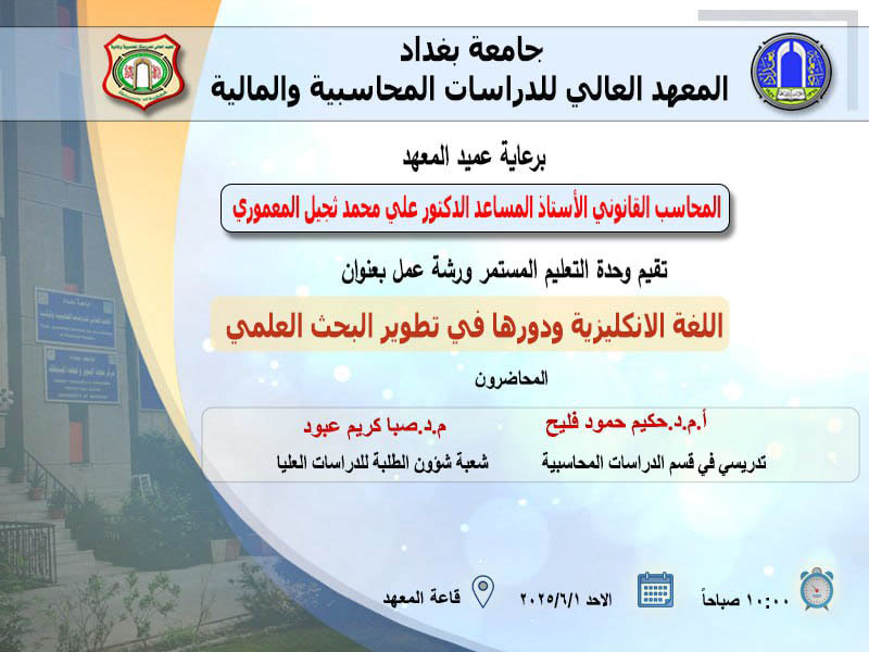 يوم الاحد 2025/6/1 الساعة العاشرة صباحاً وستقام الورشة حضورياً على قاعة المعهد