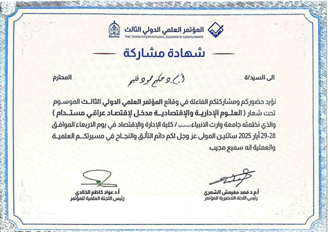 شارك الأستاذ المساعد الدكتور حكيم حمود فليح، التدريسي في قسم الدراسات المحاسبية في معهدنا ببحث مشترك مع اساتذة في جامعات عراقية بالمؤتمر العلمي الدولي الثالث لكلية الإدارة والاقتصاد – جامعة وارث الأنبياء ببحث علمي بعنوان (دور المدقق الداخلي في تقييم مخاطر الذكاء الاصطناعي وفق المتطلبات الدولية في القطاع المصرفي العراقي باستخدام برنامجPower BI).