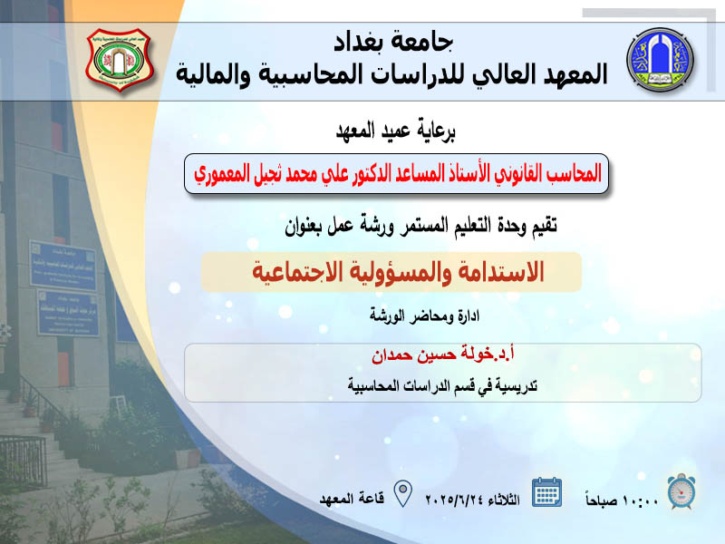 يوم الثلاثاء 2025/6/24  الساعة العاشرة صباحاً وستقام الورشة حضورياً على قاعة المعهد