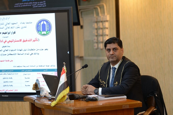 ناقش قسم الدراسات المالية بالمعهد العالي للدراسات المحاسبية والمالية للدراسات العليا في جامعة بغداد البحث الموسوم (تأثير التدقيق الإستراتيجي في إدارة المخاطر المصرفية/بحث تطبيقي) للطالب كرار ابراهيم حمزة للحصول على شهادة الدبلوم العالي المعادلة لشهادة الماجستير في المصارف ويمنح حاملها جميع حقوق وامتيازات شهادة (الماجستير).
