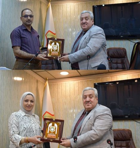 كرم عميد المعهد العالي للدراسات المحاسبية والمالية في جامعة بغداد المحاسب القانوني الأستاذ المساعد الدكتور علي محمد ثجيل المعموري، اثنين من منتسبي معهدنا كل من المدرس المساعد هبة محمود محمد مسؤول شعبة التدقيق والرقابة الداخلية والمدرس المساعد عدي عبيد زيدان مسؤول وحدة ضمان الجودة والاداء الجامعي بدرع المعهد الموسوم “الموظف المثالي” لشهر اب 2025 وقد حضر التكريم جمعا من أساتذة ومنتسبي المعهد، فضلا عن طلبة المعهد.