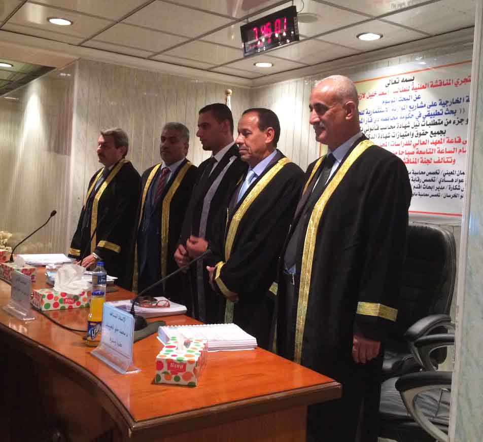 تم بعون الله تعالى مناقشة بحث الطالب (أسعد خليل لازم) قسم الدراسات المحاسبية تخصص محاسبة قانونية وهو جزء من متطلبات نيل شهادة المحاسب القانوني المعادل للدكتوراه عن بحثه الموسوم ((الرقابة الخارجية على مشاريع الموازنة الاستثمارية للحكومات المحلية – بحث تطبيقي على حكومة محافظة ذي قار المحلية)) وذلك في تمام الساعة التاسعة من صباح يوم الاحد المصادف 2014/11/23 وعلى قاعة المعهد برئاسة الاستاذ المساعد الدكتور سعد سلمان المعيني – تخصص محاسبة مالية – المساعد الاداري – هيئة التعليم التقني وعضوية كل من:-
